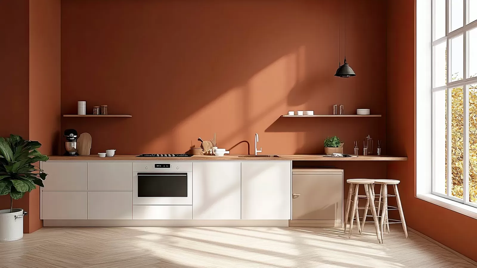 Los colores cálidos transmiten calma y conexión con la naturaleza. Por eso, en 2025 veremos menos espacios completamente blancos y más combinaciones con tonos suaves y naturales. Para quienes buscan un ambiente aún más acogedor, se pueden incorporar acentos en tonos chocolate o mostaza.
